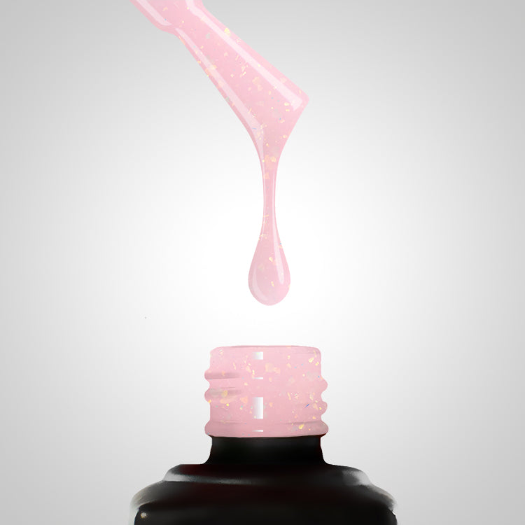 A unique, stunning base in a darker, pink shade with numerous round particles, sparkling in...