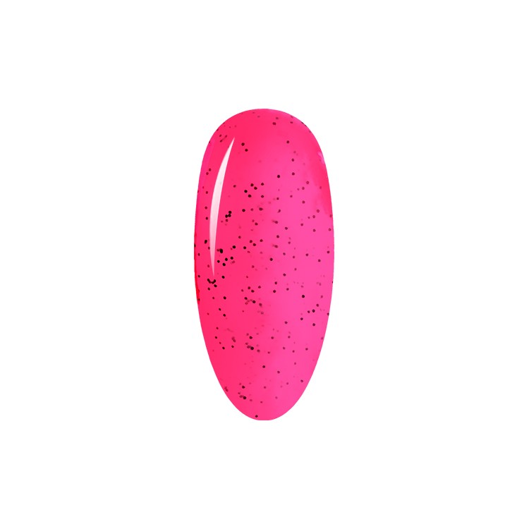 294 Crimson Sweet is a very intense neon gel polish in a rich, orange, warm color. It has a medium consistency. It spreads well, does not flood the cuticles and is easy to apply. It contains medium-sized black particles that emphasize the depth of the neon product. It can be used as the only type of nail styling or as a unique decoration, such as exotic flowers or imitation of exotic cocktails that a manicure stylist can make for the summer.