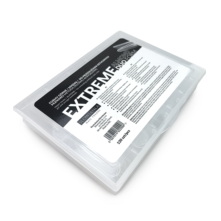 Extreme Duo Form Almond forms provide very modern nail extensions - the so-called "Princess nails". They are characterized by a brocade ombre on the cuticles or a colored ombre on the entire nail plate. This product is also great for aquarium decoration (artistic extension).