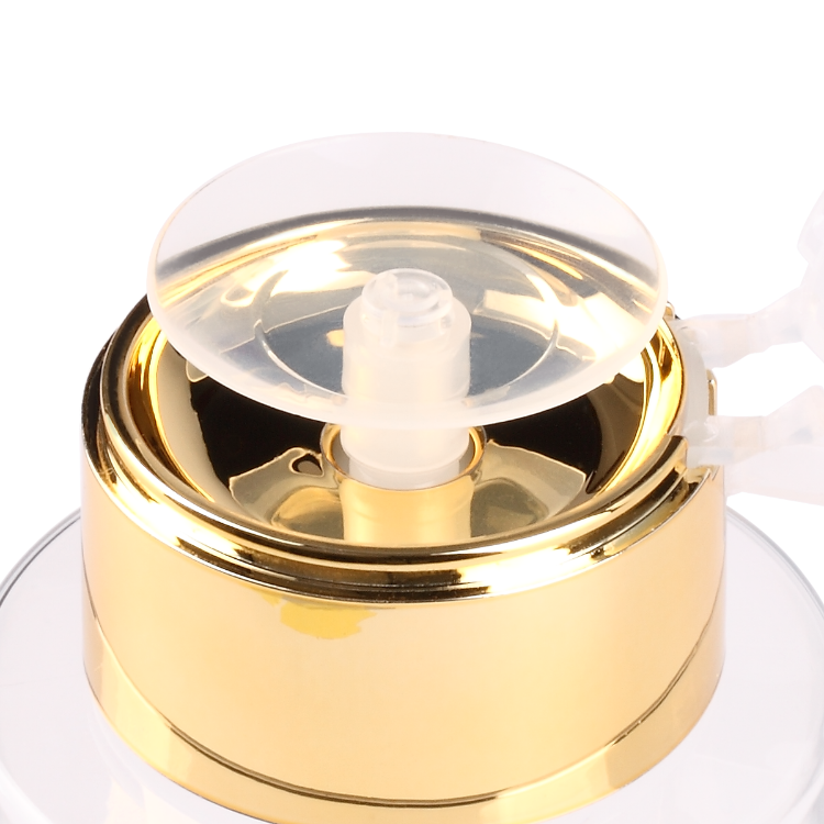 Бутилката за почистващ препарат Slowianka е чудесен декоративен елемент за салон за маникюр. Ако държите на естетиката на работното си място, неговия престиж и удовлетвореността на клиентите, нашата бутилка за почистващ препарат ще бъде вашият най-добър приятел. Обемът ѝ е 150 мл, така че не заема твърде много място. Снабдена е с удобна помпа, която улеснява дозирането на течности. Изработена от висококачествена пластмаса, елегантна, декорирана със златни детайли.