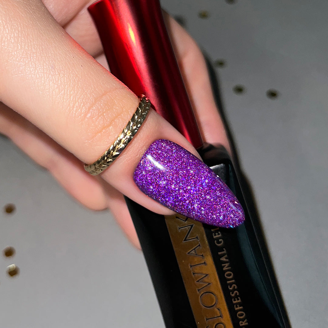 Феноменален блестящ ефект, с много дълбок, мега-интензивен патладжан-лилав цвят, граничещ с флуоресцентно виолетово. Нашият невероятен Цветен коктейл - изключително изразителен цвят във второто издание на Bikini Party от Slowianka Nail Trends. На силна, изкуствена светлина, светкавичните частици блестят с лилаво, тъмносиньо, розово - лилаво, което води до страхотен многоцветен ефект. Маникюрът в тази версия е истински летен хит.