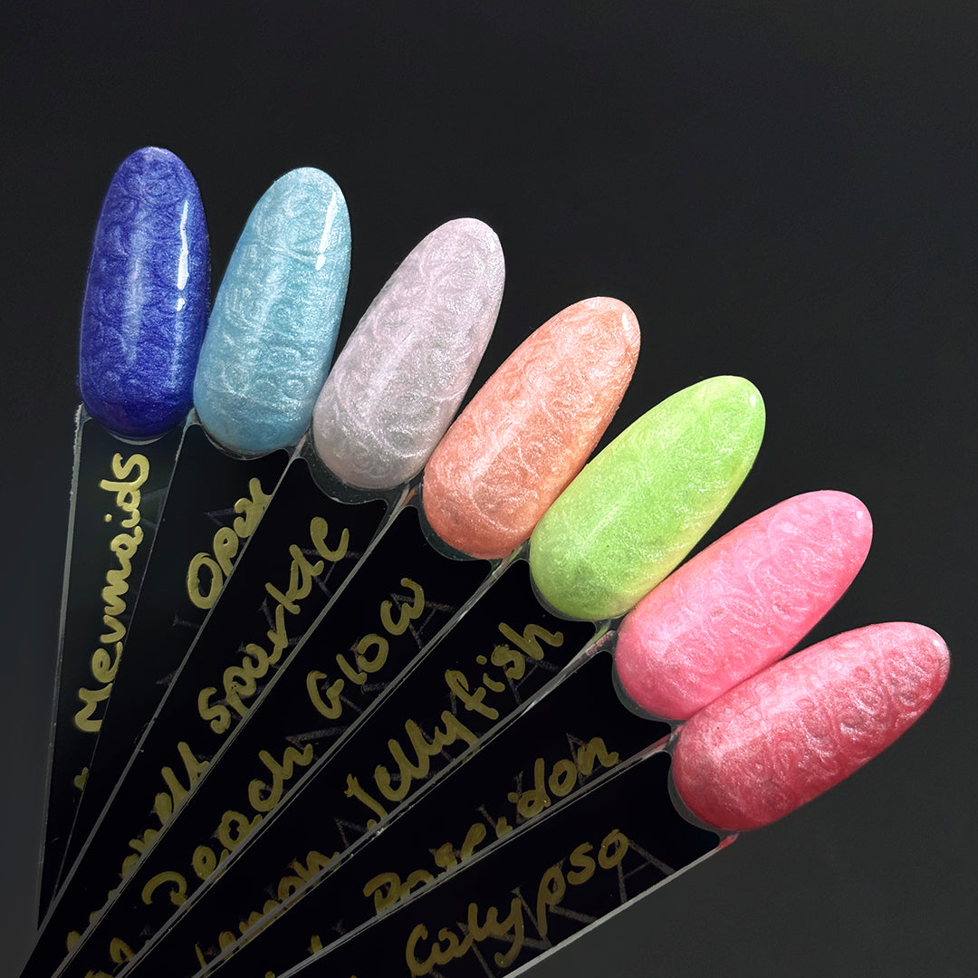 Колекцията Pearl Paradise е уникално допълнение към тенденциите това лято. Хибридните лакове от тази серия се отличават с деликатен, блестящ перлен ефект, който добавя елегантност и финес към всеки стил. Могат да се нанасят по няколко начина за постигане на различни крайни ефекти, идеални както за лято и ваканции, така и за ежедневна употреба. Колекцията се състои от седем красиви нюанса, сред които има по нещо за всеки. От нежни пастелни розови до неоново розови, жълти, сини и лилави, всеки от тези цветове е привличащ вниманието и внася нотка свежест в маникюра. Нещо повече, тези хибридни лакове се характеризират с висока пигментация, която позволява пълно покритие само след един слой, значително намалявайки времето, необходимо за хибриден маникюр.