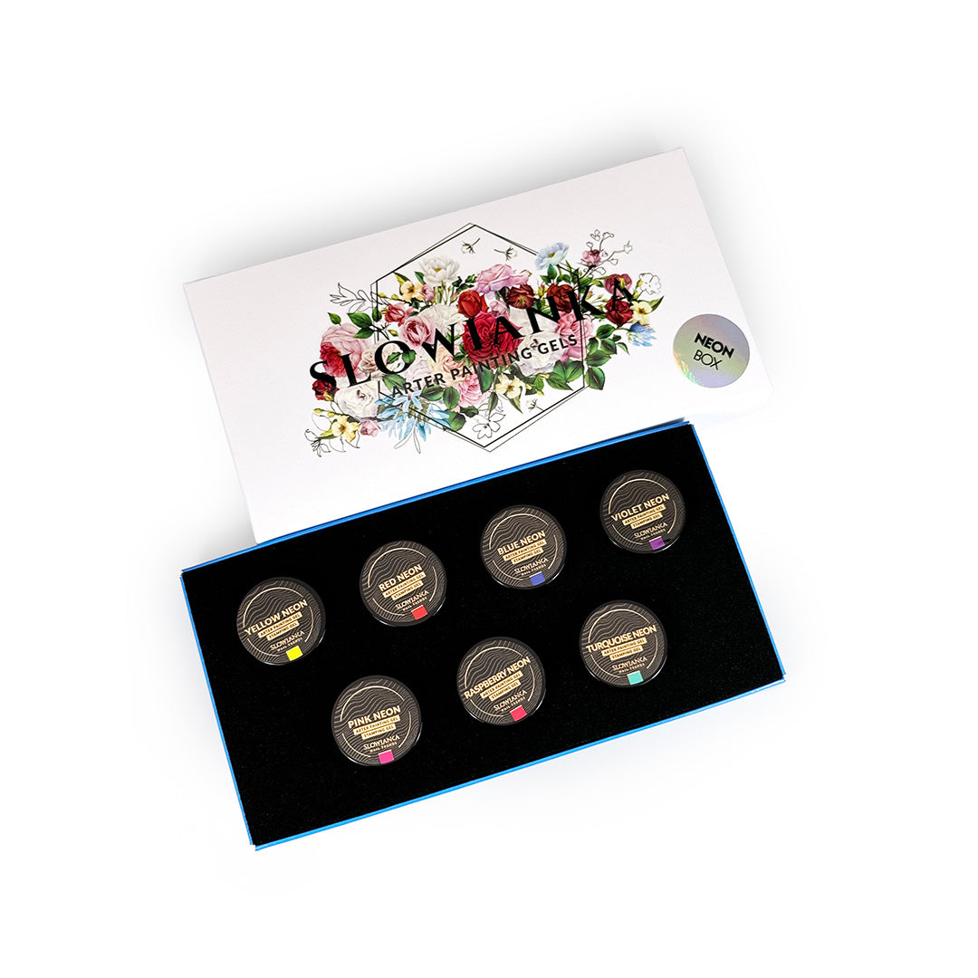 Нашите най-продавани гелове за рисуване Arter, сега и в лятно издание! Новата NEON BOX съдържа: Неоново червено 5 г, Неоново виолетово 5 г, Неоново тюркоазено 5 г, Неоново жълто 5 г, Неоново розово 5 г, Неоново малиново 5 г, Неоново синьо 5 г.