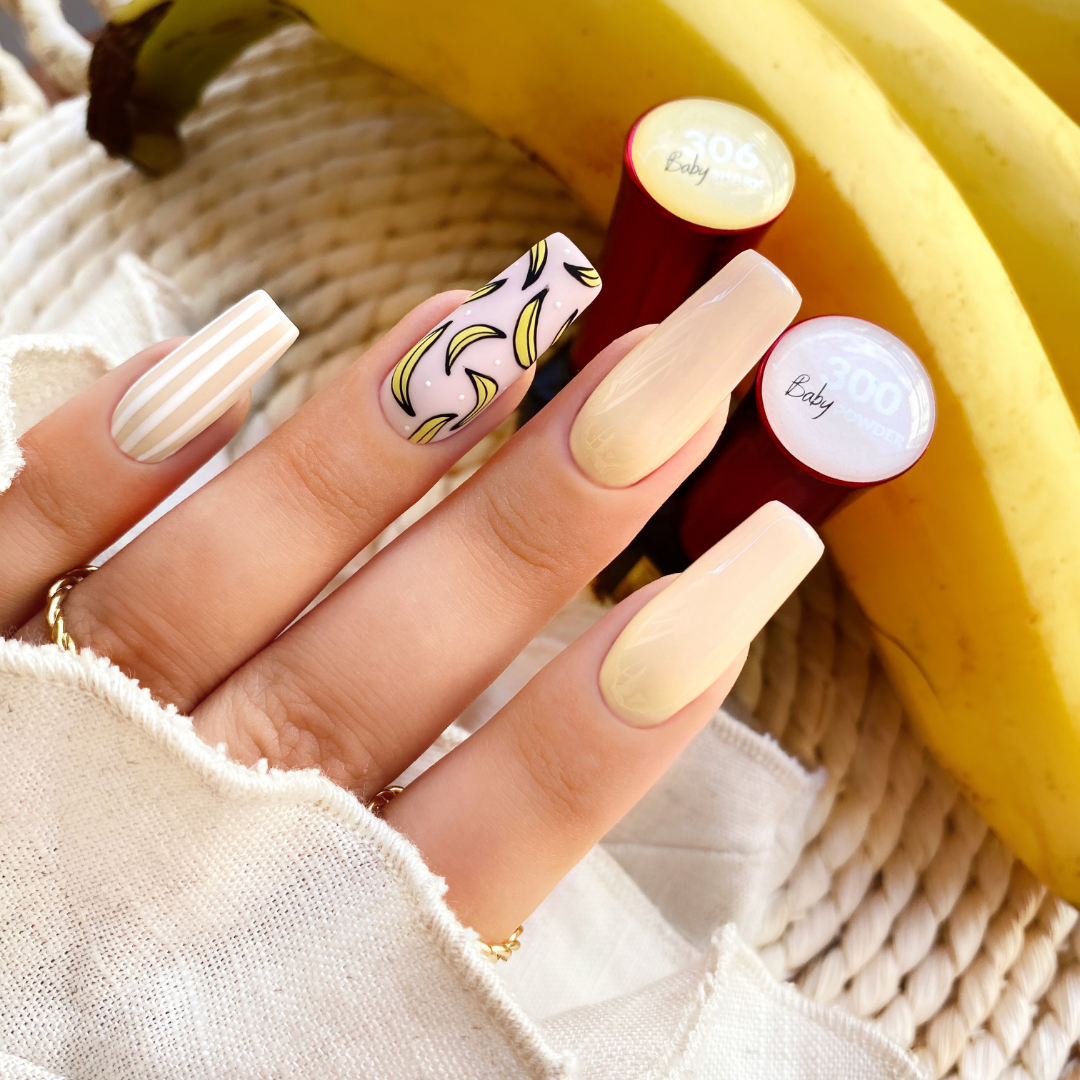 306 Baby Shark Cover Base от линията Baby Base Cover е с топъл цвят на млечно-бананова напитка - определен избор за женствен, изискан стил на ноктите. Високата адхезия между базата и нокътната плочка гарантира устойчивост на образуване на мехурчета по кутикулите и от страната на свободния ръб.