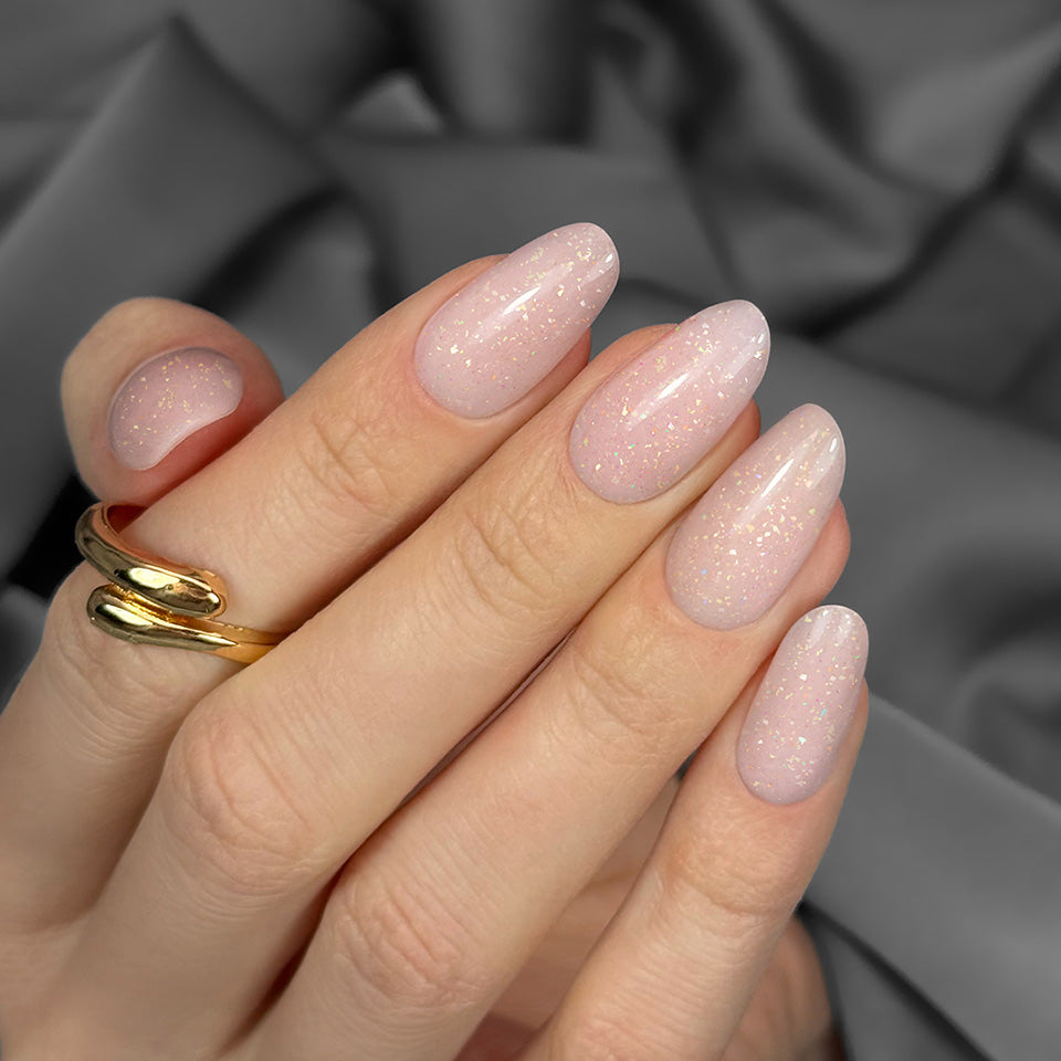 Но това не е всичко - Cute Ariel впечатлява и благодарение на многоцветните частици, вградени в гел структурата. Те блестят като феин прах на светлината, преливайки в нюанси на розово, медно, златно и фин селадон. Ефектът, който създават, е едновременно деликатен и забележим - семпъл, но привличащ вниманието. Частиците отразяват светлината красиво, добавяйки благороден блясък и дълбочина към прическата. Това е перфектният избор за тези, които търсят нещо повече от класически нюд - те искат естественост, но с нотка уникалност.