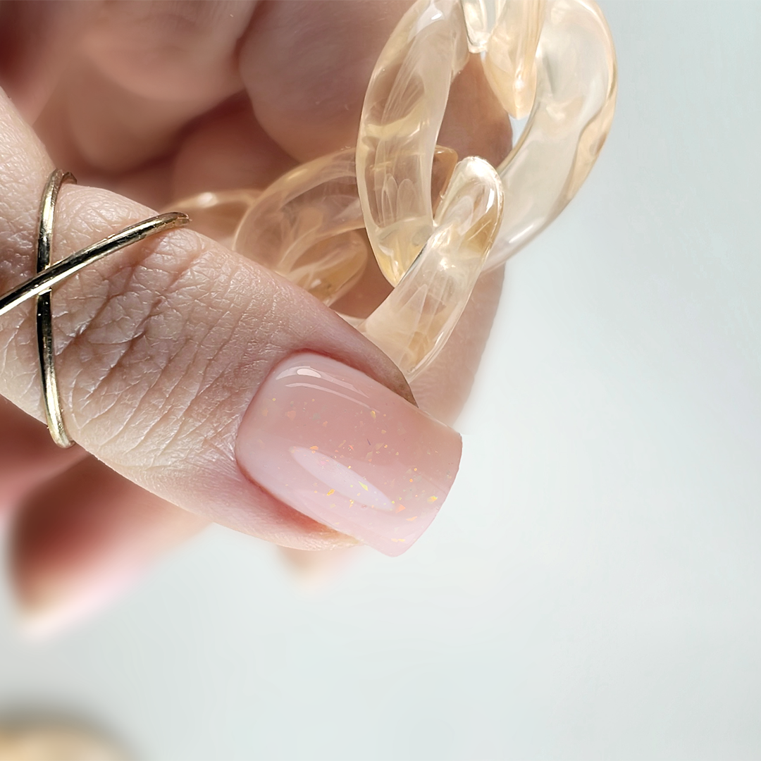 Телесен, топло розов, с прасковен оттенък. Unicorn Skin Base е розово-прасковено с еднорогови люспи, т.е. многоцветни частици, блестящи в различни цветове: аквамарин, златист, меден, розов, лилав и лавандулов. Люспите са много тънки, така че не създават никаква дебелина върху ноктите и не се усещат по време на работа. Базата силно втвърдява естествените нокти; работи както със средно твърди, така и с меки, чупливи нокти.