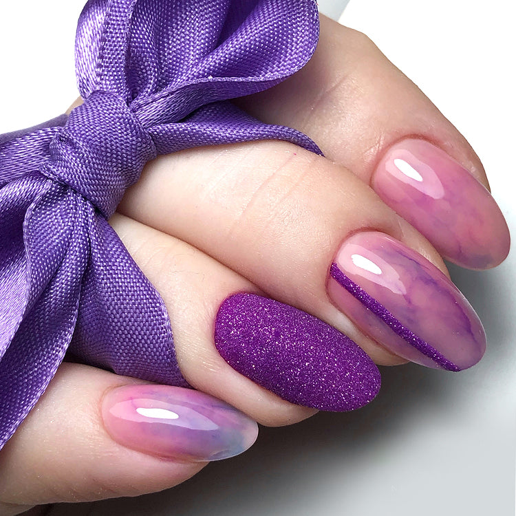 Акварелът Violet ViolInk 193 изглежда страхотно в комбинация с пастелни нюанси на гел лакове, включително бяло, екрю, кремаво или бежово.